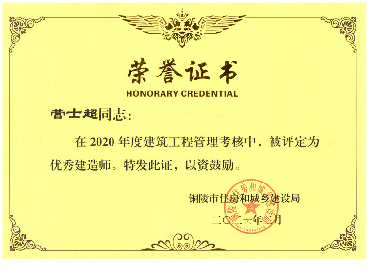 銅陵市2020年度優(yōu)秀建造師(營士超)