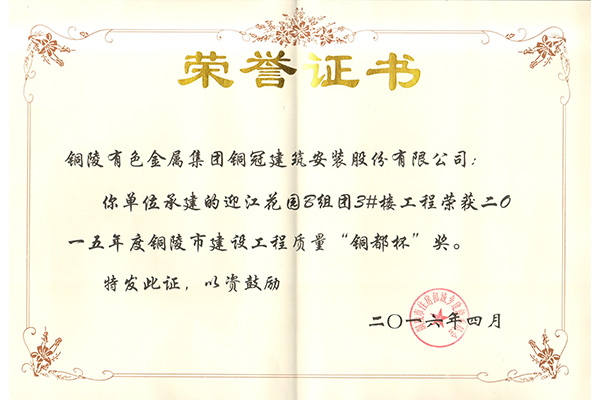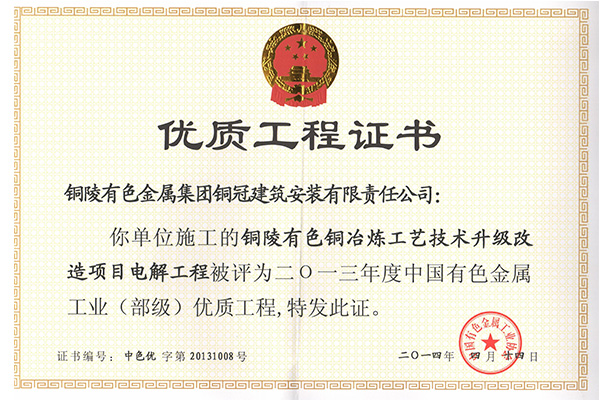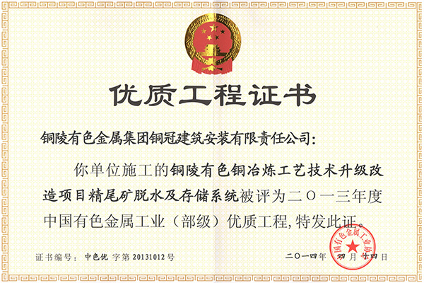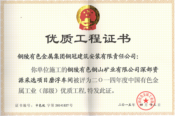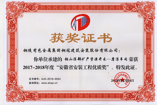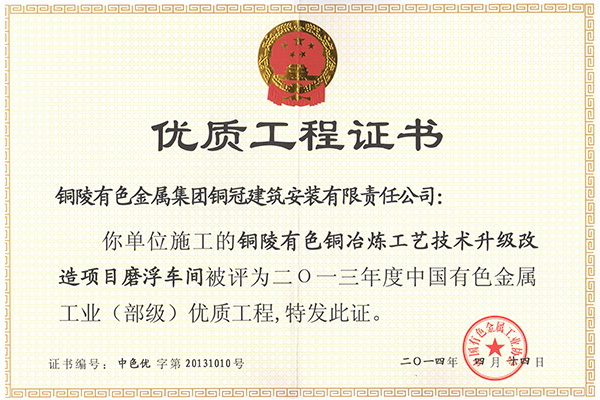 銅山磨浮—安裝優(yōu)質(zhì)工程獎(jiǎng)