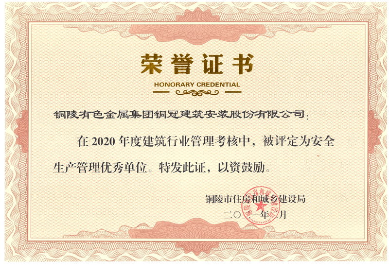 銅陵市2020年度安全生產(chǎn)管理優(yōu)秀單位