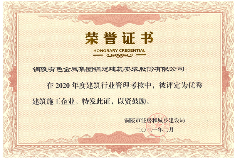 銅陵市2020年度優(yōu)秀建筑施工企業(yè)